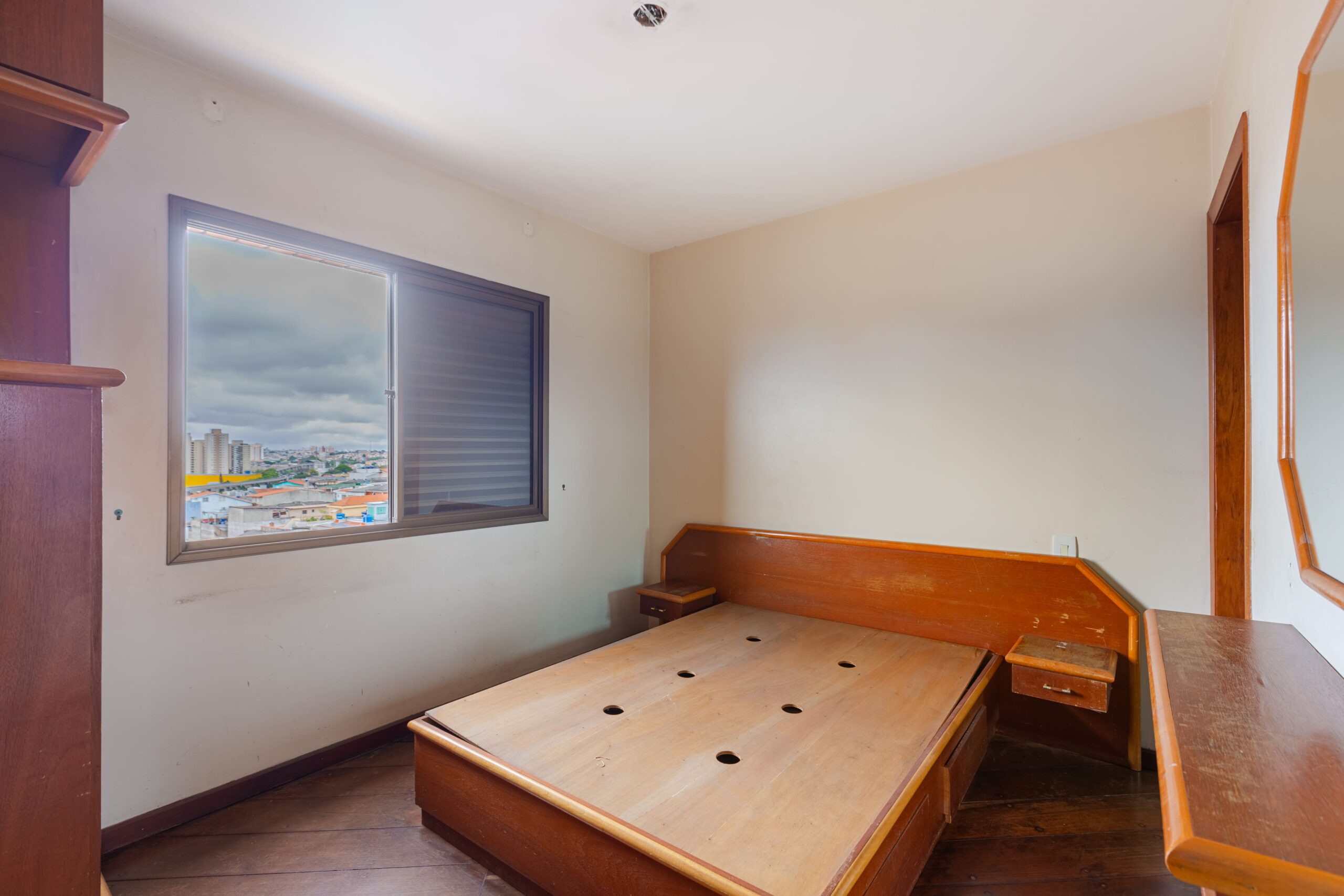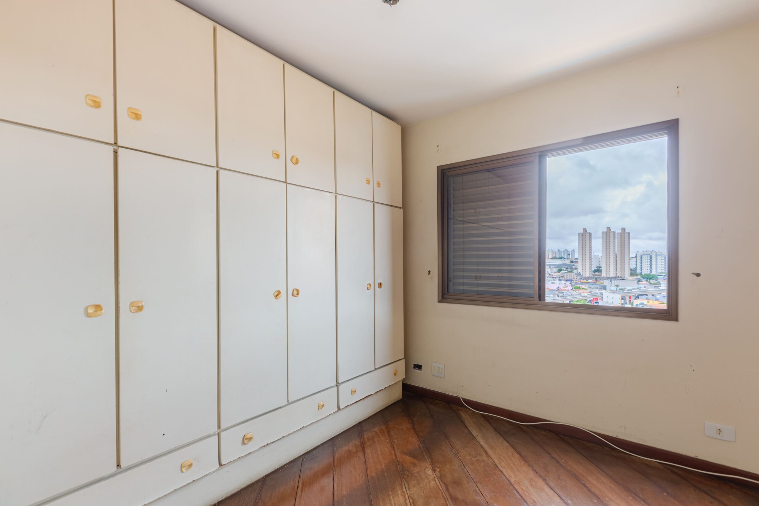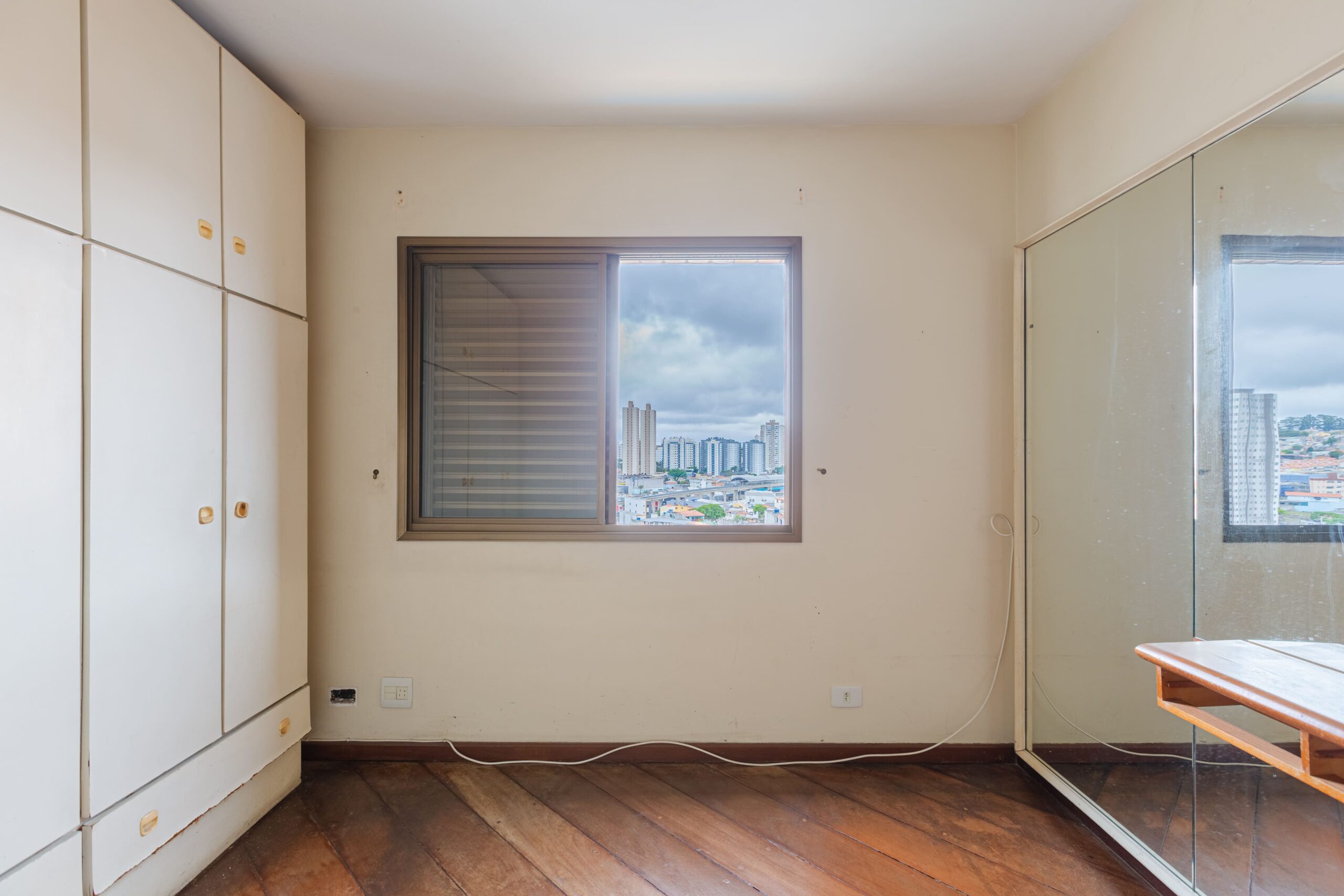 Apartamento com uma suíte e dois dormitórios, cozinha, sala, varanda com vista, lavanderia e departamento para funcionário(a).