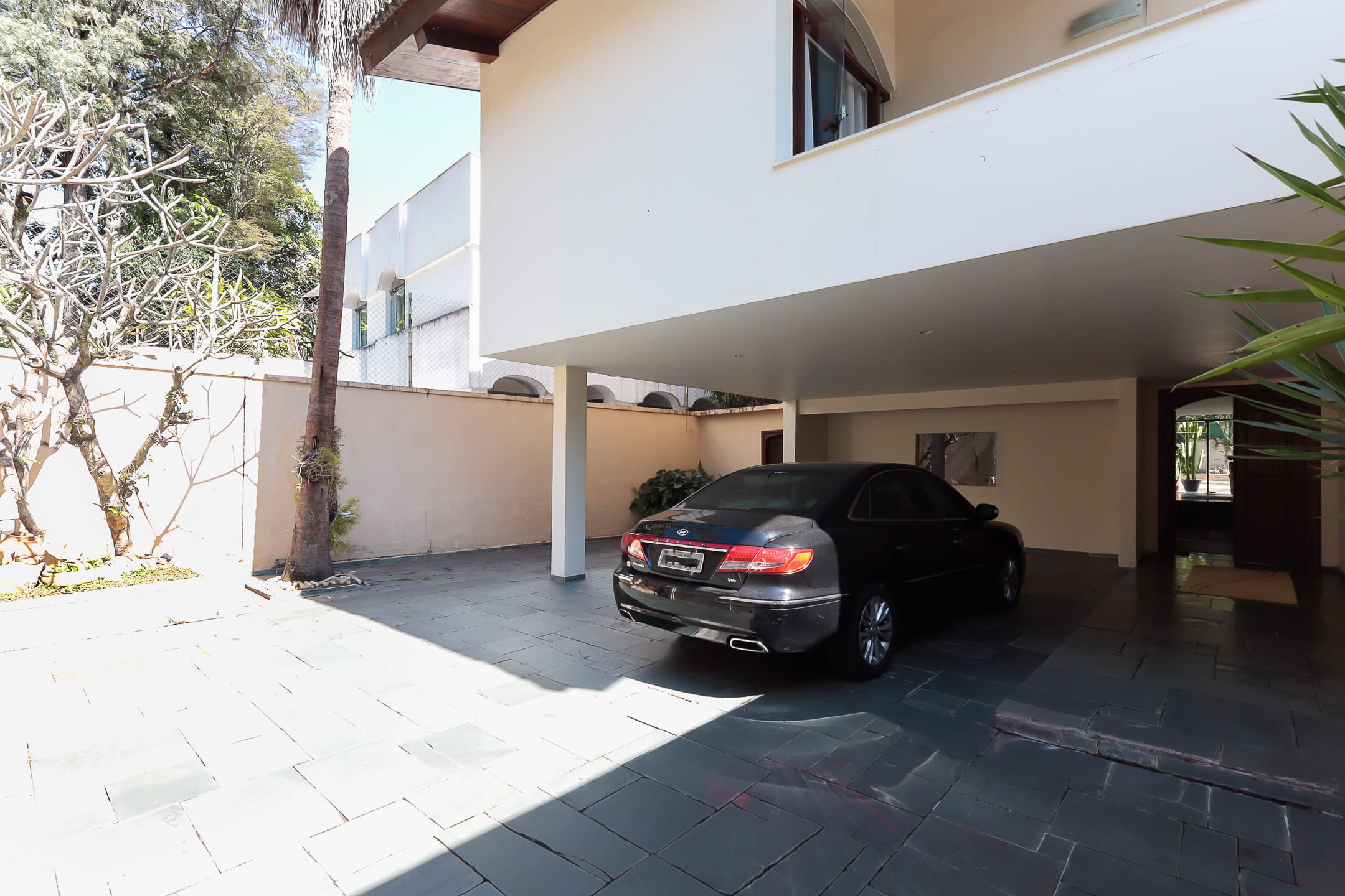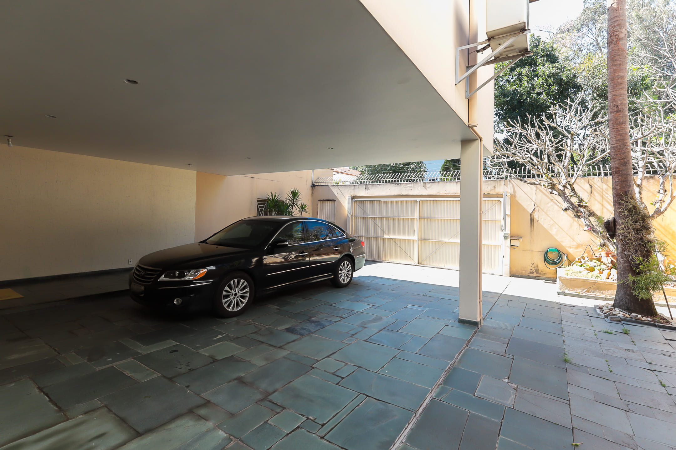 > Garagem com capacidade para quatro veículos.