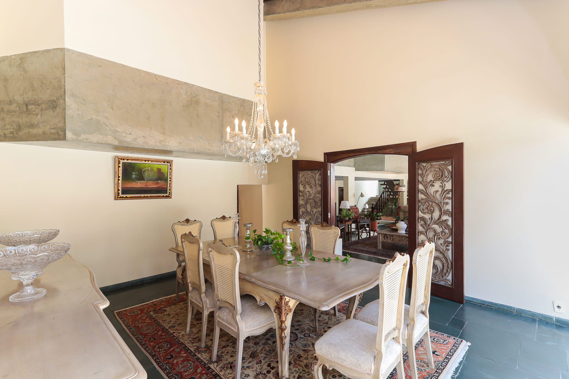 > Oferece duas suítes completas e três dormitórios, sala de almoço e jantar, cozinha, living para dois ambientes com sala de televisão, escritório, lavabo e ampla área de serviço com lavanderia e departamento para funcionário(a).
