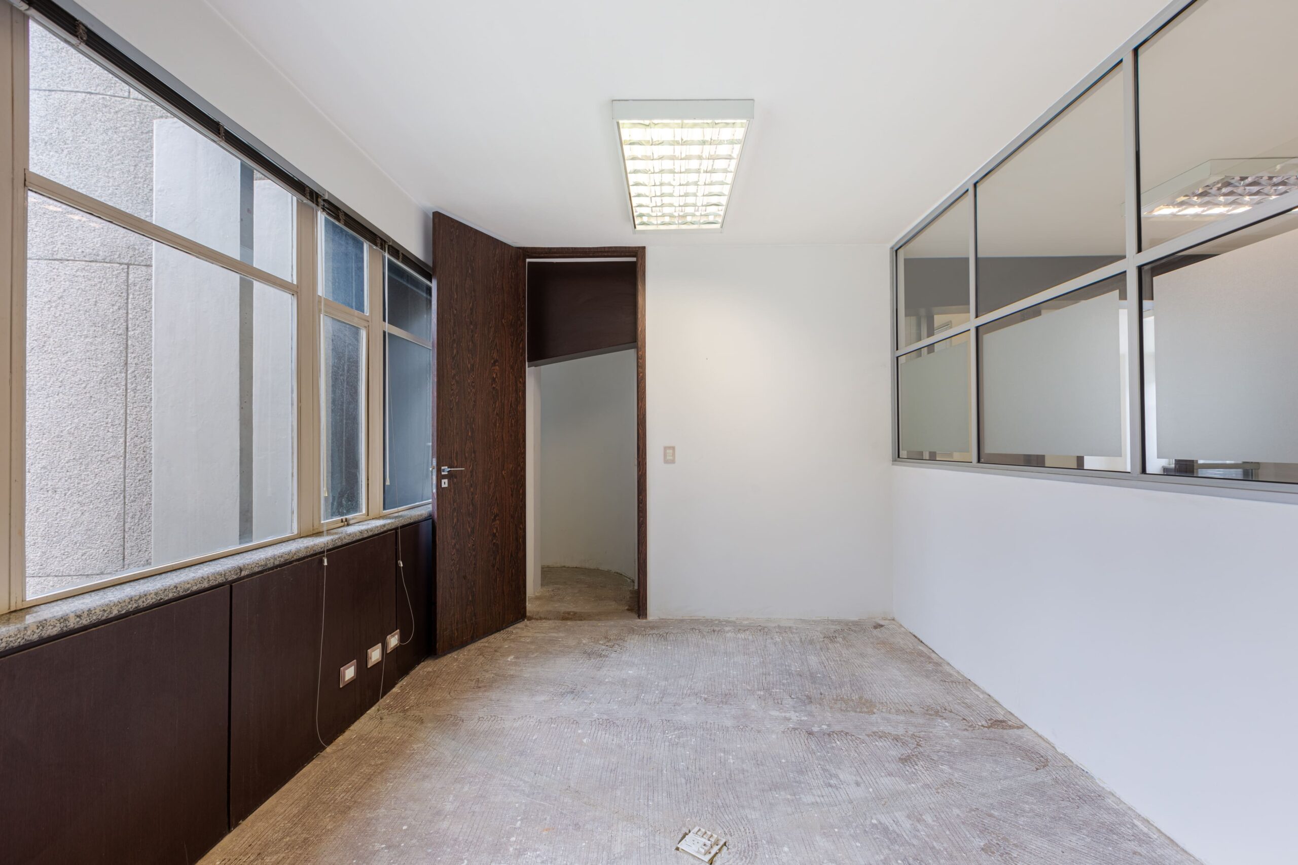 Laje corporativa localizada no 6º andar, com cinco salas fechadas por divisórias, sala de reunião, três banheiros e copa.